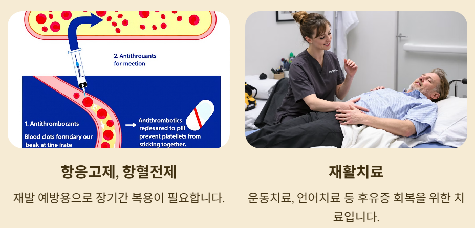 - 회복 이후에도 꾸준한 관리·재활 치료 필요